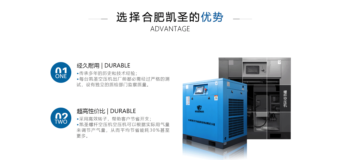 合肥凱圣節(jié)能科技有限公司是從事永磁變頻螺桿壓縮機系統的設計、制造、安裝、調試、維修與一體的公司。 在多年的螺桿空壓機研發(fā)與推廣歷程里,凱圣聚集和培養了大量壓縮機技術設計和管理人員,迅速發(fā)展成為集研究、生產、銷售、服務等環(huán)節(jié)為一體、嚴格按照標準執(zhí)行的企業,公司成立開始,即以滿足客戶的實際需求為己任,大力開拓國內外節(jié)能型空壓機市場,并始終保持創新精神,全力研發(fā)更為節(jié)能的螺桿式空壓機,努力站在空壓機節(jié)能領域的排頭位置。 應用范圍:公司產品廣泛應用于機械、輕工、紡織、食品、石油、化工、冶金、礦山、電力、城建、醫學研究和科研等各行業中,將為節(jié)約能源做出巨大貢獻。公司秉承“信譽至上,...